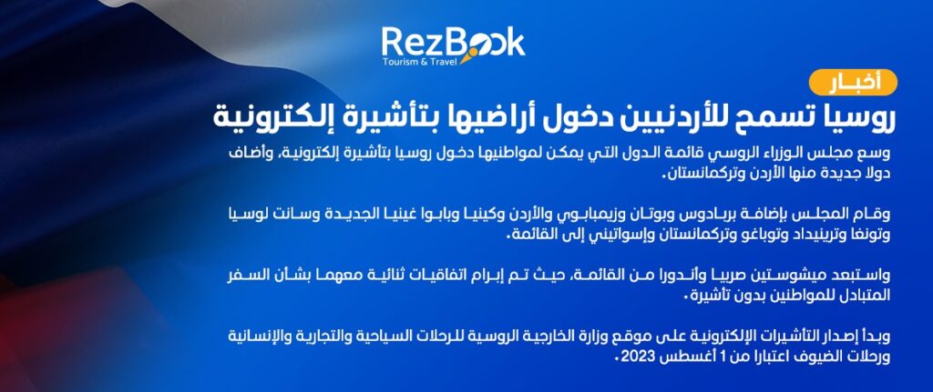 هل يحتاج المواطن الأردني لتأشيرة لدخول روسيا؟ روسيا قد أعلنت عن توسيع قائمة الدول التي يمكن لمواطنيها دخول أراضيها بتأشيرة إلكترونية حيث تم إضافة عدة دول جديدة إلى القائمة تشمل الأردن، تركمانستان، بربادوس، بوتان، زيمبابوي، كينيا، بابوا غينيا الجديدة، سانت لوسيا، تونغا، وترينيداد وتوباغو تم ذلك في إطار سياسة تسهيل الدخول إلى روسيا للأغراض السياحية، […]